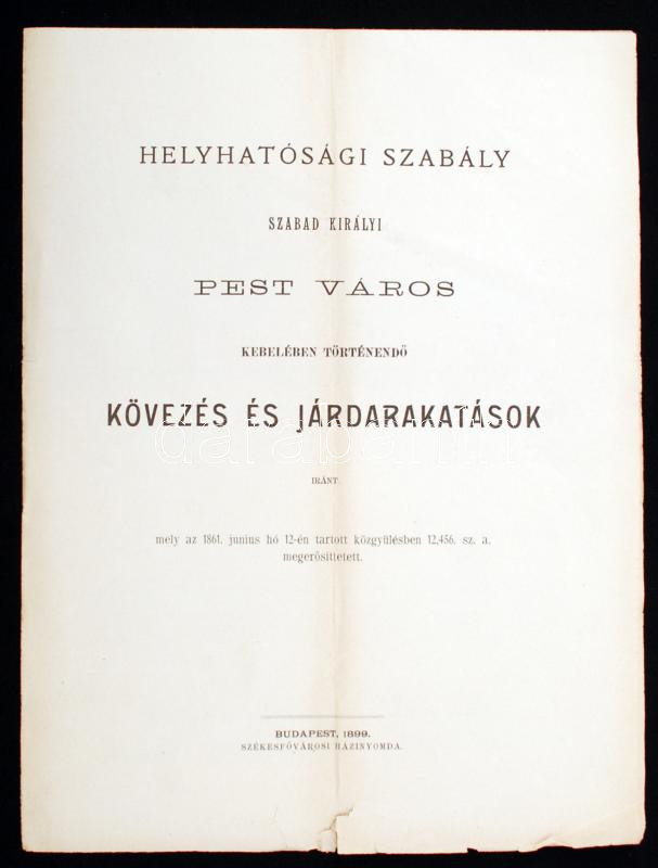 1899 Helyhatósági szabályok szabad királyi Pest város kebelében történ... https://www.darabanth.com/de/246-Fernauktion/246.0/Andere-Sammelgebiete/Drucksachen~1400003/1899-Helyhatosagi-szabalyok-szabad-kiralyi-Pest-varos-kebeleben-tortenendo-kovezes-es-jC3~II1170901