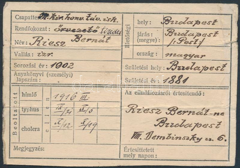 cca 1902 Izraelita vallású személy dögcédula papírja, 6x9cm https://www.darabanth.com/de/246-Fernauktion/246.0/Andere-Sammelgebiete/Judaica~2000395/cca-1902-Izraelita-vallasu-szemely-dogcedula-papirja-6x9cm~II1169162