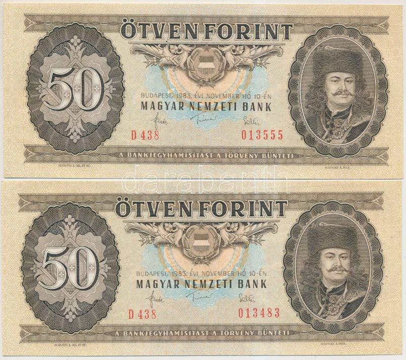 1983. 50Ft (2x) nyomdai papírráncokkal T:I https://www.darabanth.com/de/246-Fernauktion/246.0/Numismatik/Ungarische-Banknoten~400008/1983-50Ft-2x-nyomdai-papirrancokkal-TI~II1167776