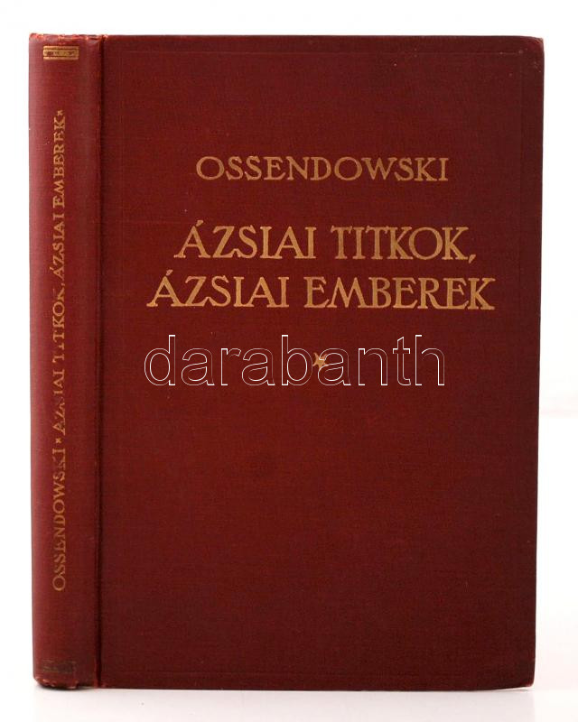 Ossendowski: Ázsiai titkok, ázsiai emberek(Man and mistery in Asia). Fordította Sajó Aladár. Bp., Franklin-Társulat. Kiadói aranyozott egészvászon kötés, jó állapotban.