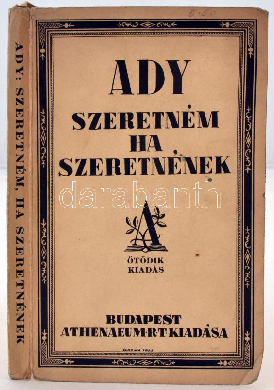 Bp., 1923. Athenaeum. ... https://www.darabanth.com/de/247-Fernauktion/247.0/Andere-Sammelgebiete/Bucher-Sonstige-Raritaten~1000040/ADY-Endre-Szeretnem-ha-szeretnenek-5-kiad--Bp-1923-Athenaeum-Kozma-fedolap-tervvel-Kiad~II972156