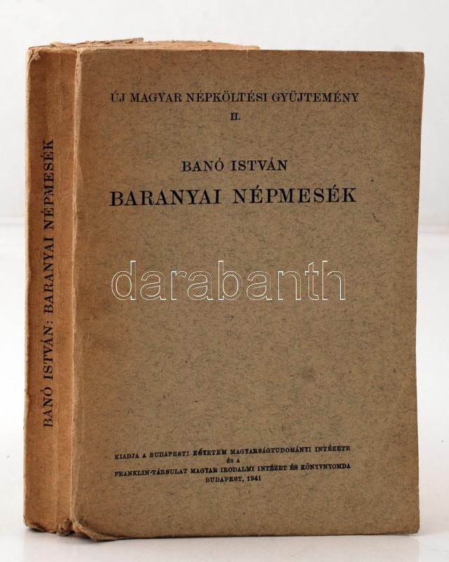 Baranyai népmesék. Bevezető tanulmánnyal és jegyzetekkel kíséri Banó István. Bp. 1941. Franklin. 301 l. Új magyar népköltési gyűjtemény. II. Laza kiadói papírkötésben