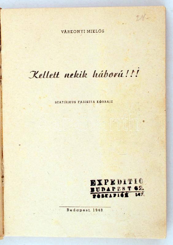 Várkonyi Miklós: kellett nekik a háború. Bp., 1948. Papír kötésben. https://www.darabanth.com/de/247-Fernauktion/247.0/Andere-Sammelgebiete/Bucher-Sonstige-Raritaten~1000040/Varkonyi-Miklos-kellett-nekik-a-haboru-Bp-1948-Papir-kotesben~II1178696
