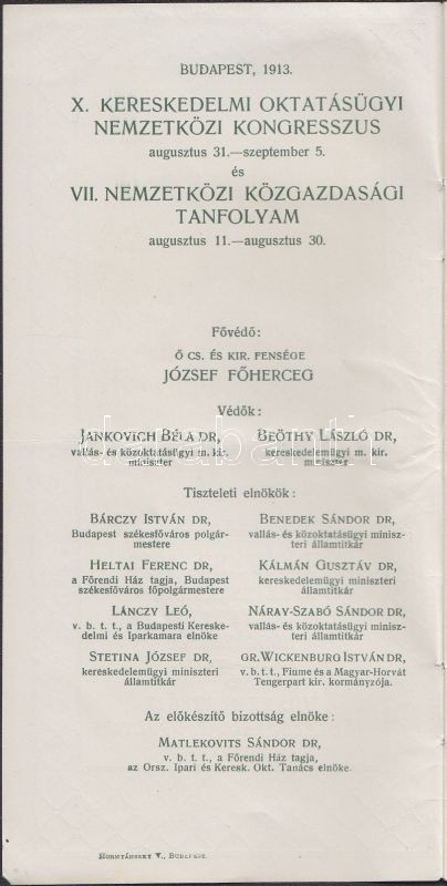 1913 Nemzetközi Kereskedelmi Oktatásügyi kongresszus képes programfüze... https://www.darabanth.com/de/247-Fernauktion/247.0/Andere-Sammelgebiete/Drucksachen~1000027/1913-Nemzetkozi-Kereskedelmi-Oktatasugyi-kongresszus-kepes-programfuzet-24p~II411511