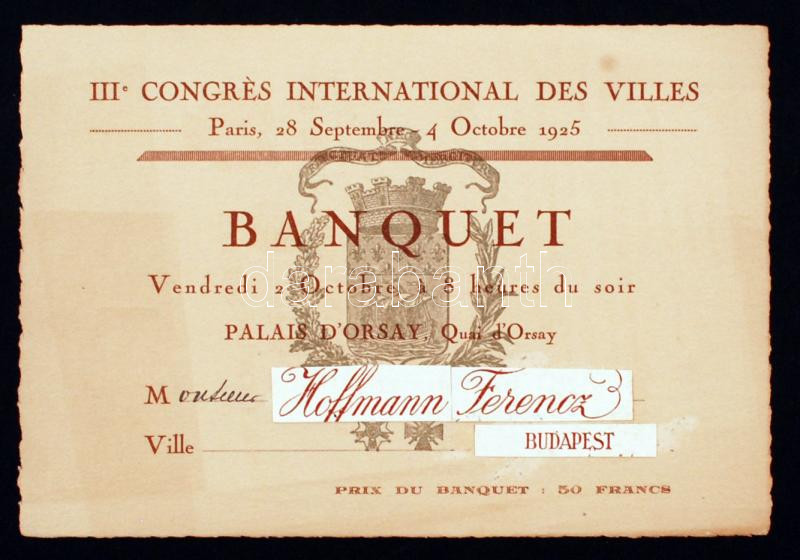 1925 Meghívó a III. Párizsi Nemzetközi Város Kongresszus bankettjára, ... https://www.darabanth.com/de/247-Fernauktion/247.0/Andere-Sammelgebiete/Drucksachen~1000027/1925-Meghivo-a-III-Parizsi-Nemzetkozi-Varos-Kongresszus-bankettjara-III-Congres-Internatio~II1018851
