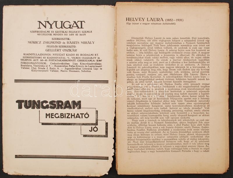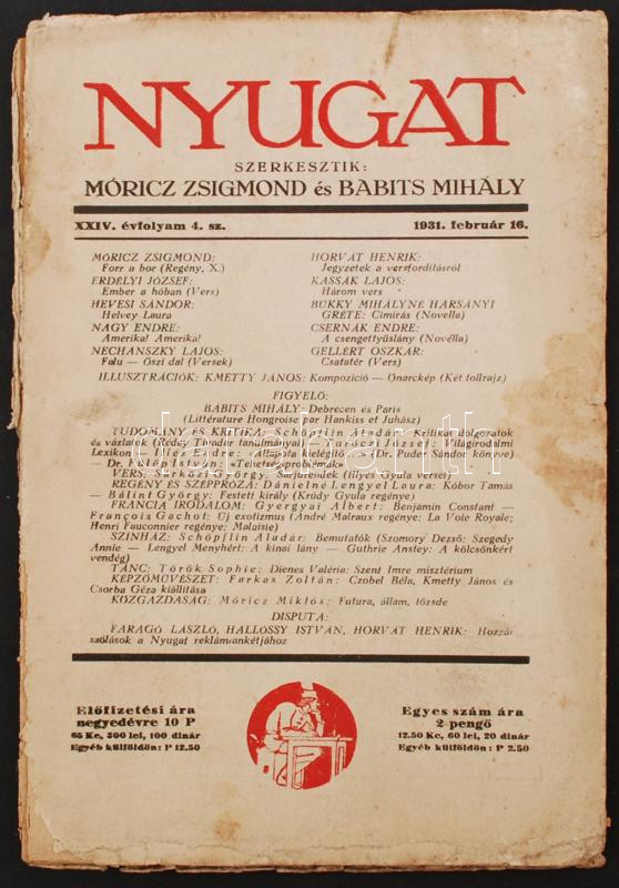 1931 A Nyugat című folyóirat XXIV. évfolyamának 4. száma, benne Erdély... https://www.darabanth.com/de/247-Fernauktion/247.0/Andere-Sammelgebiete/Drucksachen~1000027/1931-A-Nyugat-cimu-folyoirat-XXIV-evfolyamanak-4-szama-benne-Erdelyi-Jozsef-Kassak-Lajo~II1048462