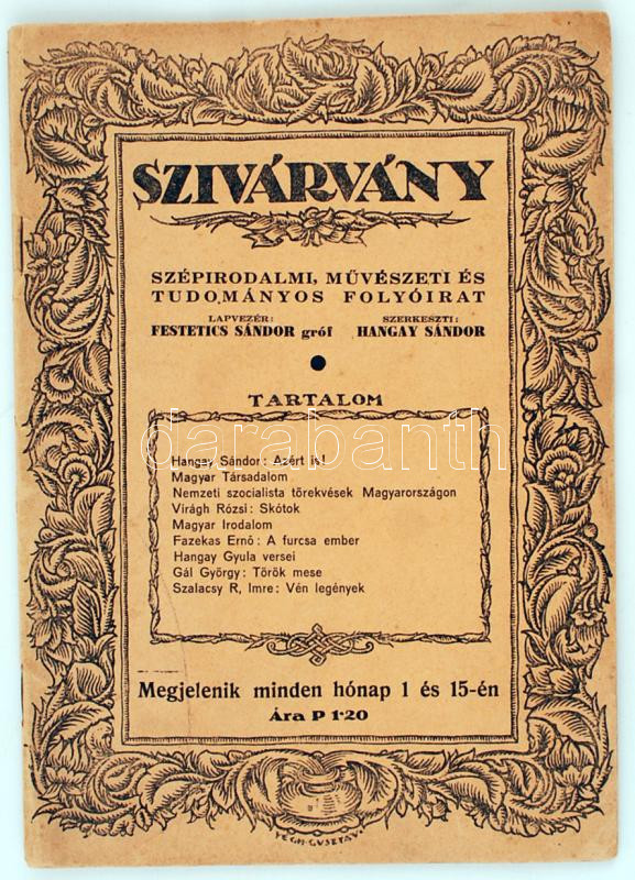 1934 A Szivárvány, Szépirodalmi, Művészetei és Tudományos Folyóirat VI... https://www.darabanth.com/de/247-Fernauktion/247.0/Andere-Sammelgebiete/Drucksachen~1000027/1934-A-Szivarvany-Szepirodalmi-Muveszetei-es-Tudomanyos-Folyoirat-VII-evfolyamanak-10-1~II1092327