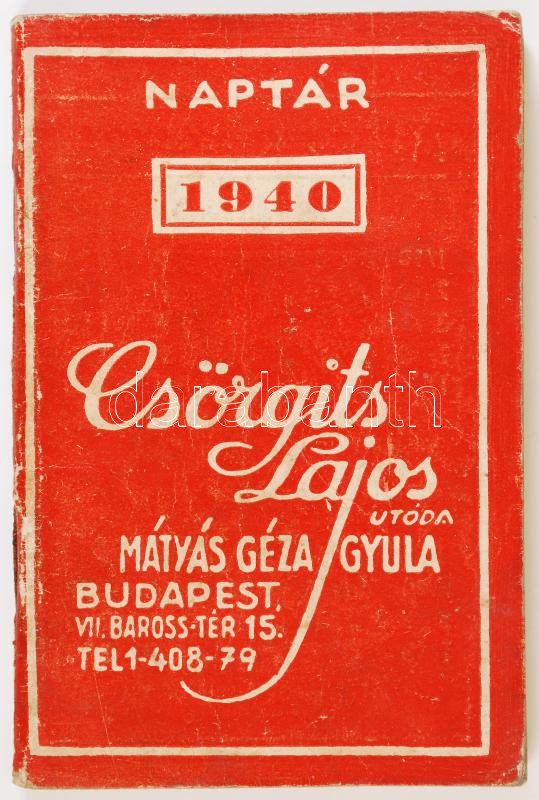 1940 Csörgits Lajos vendéglős sörháza Bp., VII. zsebnaptár. Sok haszno... https://www.darabanth.com/de/247-Fernauktion/247.0/Andere-Sammelgebiete/Drucksachen~1000027/1940-Csorgits-Lajos-vendeglos-sorhaza-Bp-VII-zsebnaptar-Sok-hasznos-informacioval~II950940