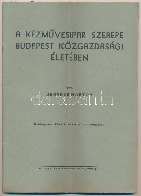 1940 Hegedűs Márton: A kézművesipar szerepe Budapest közgazdasági élet... https://www.darabanth.com/de/247-Fernauktion/247.0/Andere-Sammelgebiete/Drucksachen~1000027/1940-Hegedus-Marton-A-kezmuvesipar-szerepe-Budapest-kozgazdasagi-eleteben-pp42-25x18cm~II1176806