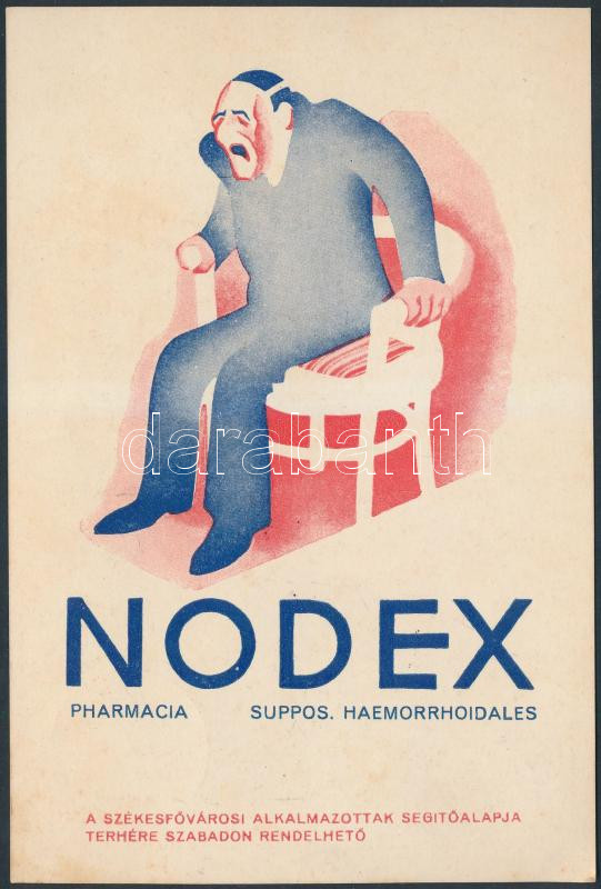 1947 Nodex Pharmacia, Suppos. Haemorrhoidales, reklám nyomtatvány, 15x... https://www.darabanth.com/de/247-Fernauktion/247.0/Andere-Sammelgebiete/Drucksachen~1000027/1947-Nodex-Pharmacia-Suppos-Haemorrhoidales-reklam-nyomtatvany-15x10cm~II1177000