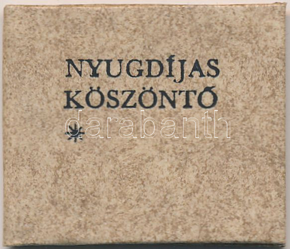 cca 1970 Nyomdaipari gépmester számára készült egyedi nyugdíjas köszöntő könyvecske, mikrokönyv formátumban, szándékosan fordítva bekötve, kartonált papírkötésben, műanyag védőborítóval, jó állapotban.