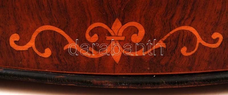 Beschreibung: Asztali titok doboz, intarziás, apró sérüléssel, 26×34 cm