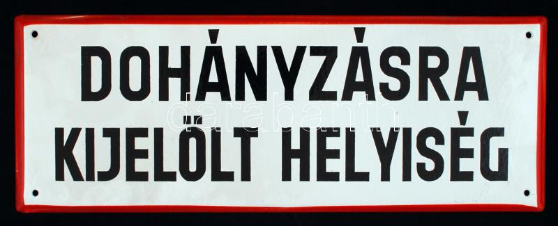 "Dohányzásra kijelölt helyiség" feliratú lemezzománc tábla, ... https://www.darabanth.com/de/247-Fernauktion/247.0/Andere-Sammelgebiete/Flohmarkt~1000010/Dohanyzasra-kijelolt-helyiseg-feliratu-lemezzomanc-tabla-jo-allapotban-15C39740-cm~II1174729