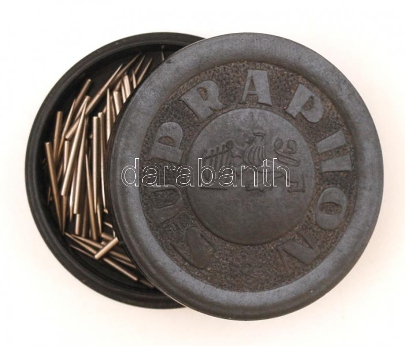 Suprahon gramofon tű, régi bakelitdoboz benne sok eredeti tűvel, d:5cm https://www.darabanth.com/de/247-Fernauktion/247.0/Andere-Sammelgebiete/Flohmarkt~1000010/Suprahon-gramofon-tu-regi-bakelitdoboz-benne-sok-eredeti-tuvel-d5cm~II1175716
