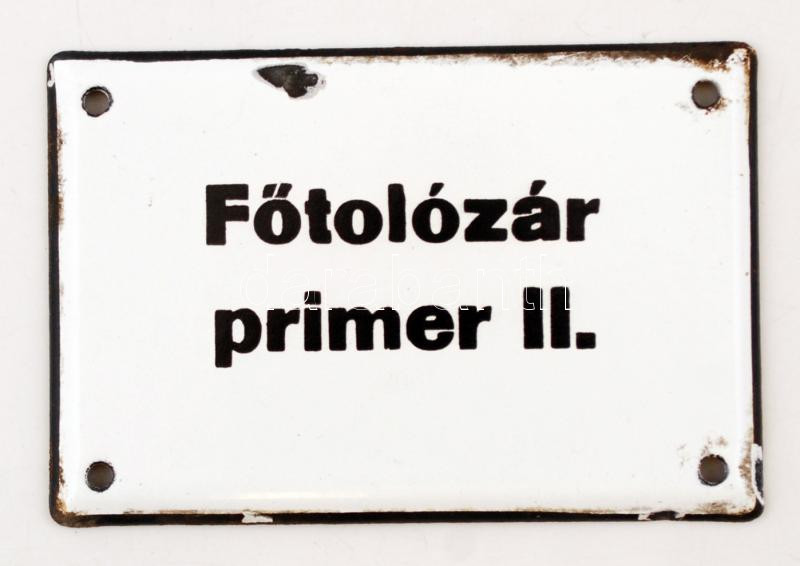Beschreibung: Zománctábla,lepattanásokkal, Főtolózár primer II., 12x8cm