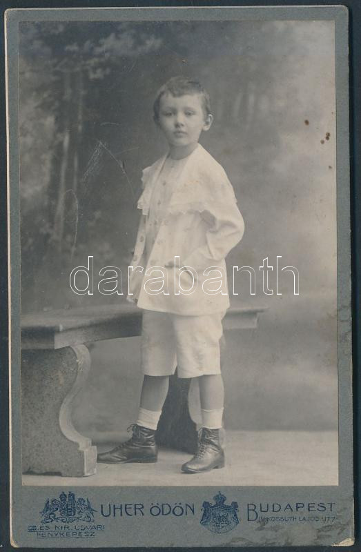 cca 1900 Kisfiú műtermi fotója, Uher Ödön műterméből, keményhátú fotó,... https://www.darabanth.com/de/247-Fernauktion/247.0/Andere-Sammelgebiete/Fotos-2~1000041/cca-1900-Kisfiu-mutermi-fotoja-Uher-Odon-mutermebol-kemenyhatu-foto-11x7-cm~II1174514