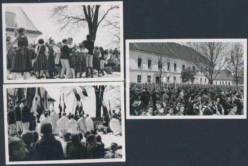 Beschreibung: 1941 KALOT-gyűlés Csíksomlyón, 3 db fotó, hátoldalon feliratozva, 7x10 cm