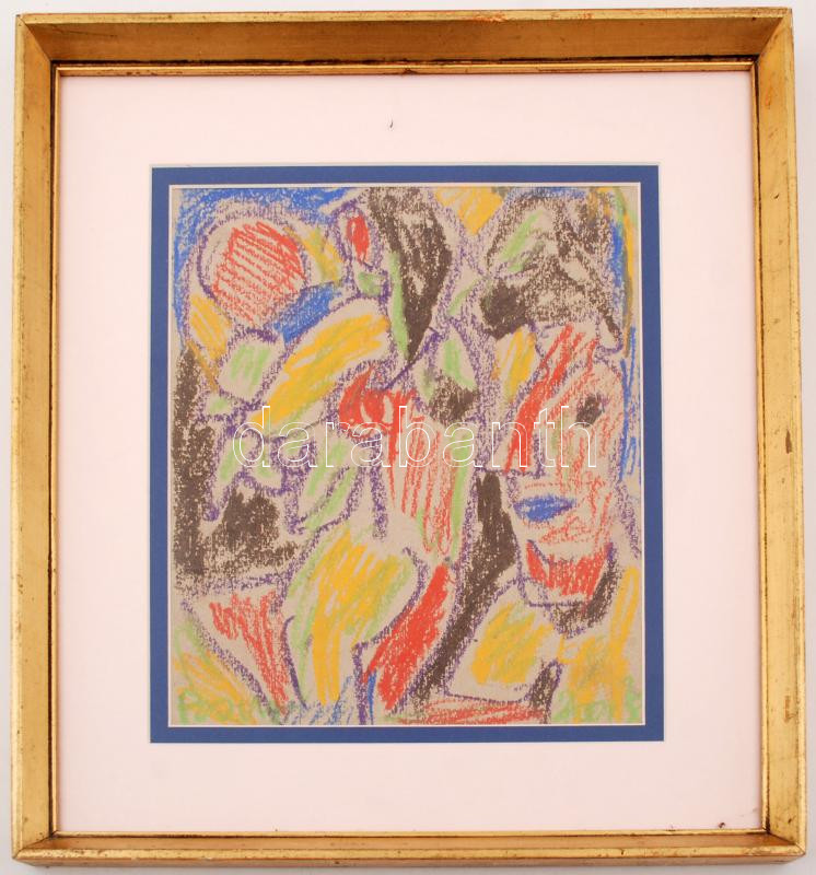 Beschreibung: Cs. Németh Miklós (1934-2012): Színes alakok. Pasztell, papír, jelzett, üvegezett keretben, 30×24 cm