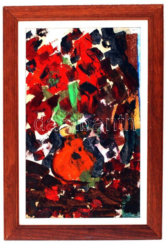 Beschreibung: Olvashatatlan jelzéssel: Virágcsendélet. Olaj, karton, keretben, 42×25 cm