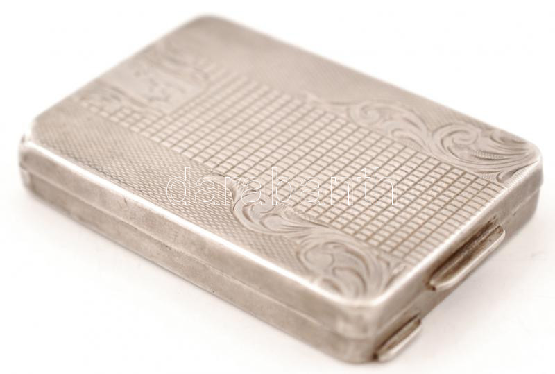 Ezüst púdertartó tükörrel, jelzett, Ag., 59gr., 7x4,5cm/ Silver box with mirror, marked, Ag., 59gr. 7x4,5cm