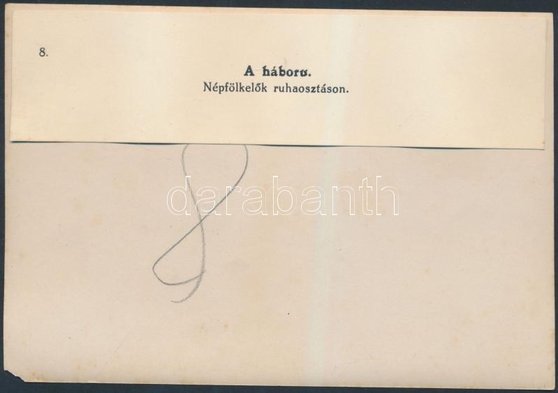 cca 1914 A háború. A népfölkelők ruhaosztáson, korabeli fotó. Verzón f... https://www.darabanth.com/de/247-Fernauktion/247.0/Andere-Sammelgebiete/Militaria~1000024/cca-1914-A-haboru-A-nepfolkelok-ruhaosztason-korabeli-foto-Verzon-feliratozva-kis-sarokh~II1178452