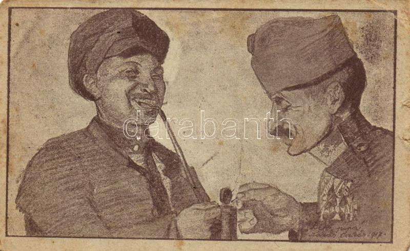 Békepipa / Peace pipe s: Lázár Oszkár (b) https://www.darabanth.com/de/247-Fernauktion/247.0/Ansichtskarten/Militaria~59/Bekepipa-Peace-pipe-s-Lazar-Oszkar-b~II1124175