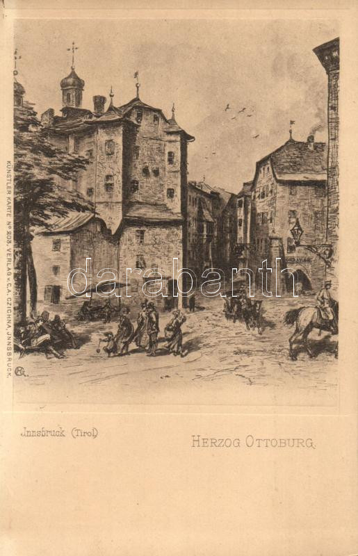Innsbruck, Herzog Ottoburg, shop of Gold Adler, Künstlerkarte No. 203. https://www.darabanth.com/de/247-Fernauktion/247.0/Ansichtskarten/Osterreich~25/Innsbruck-Herzog-Ottoburg-shop-of-Gold-Adler-Kunstlerkarte-No-203~II1062671