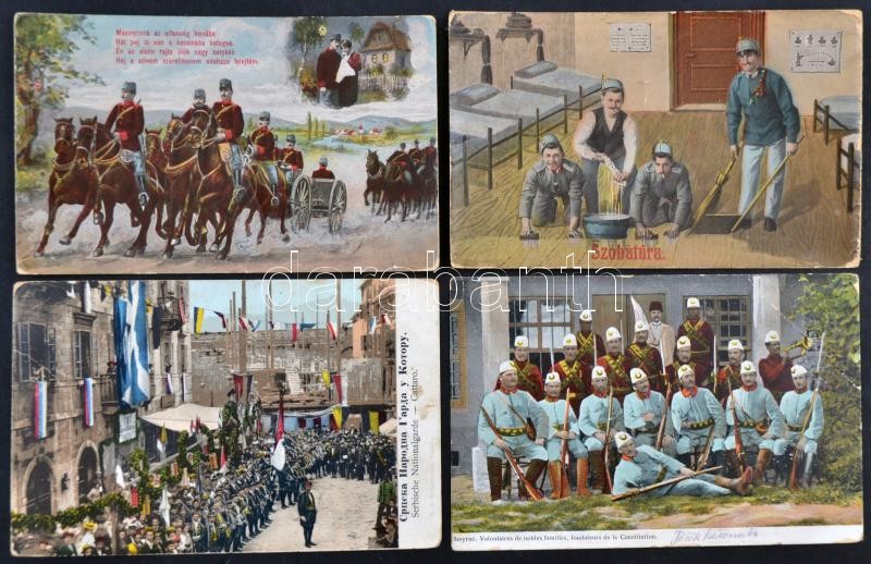 1.000 darabos képeslapgyűjtemény: magyar - és kapcsolódó külföldi - katonai, háborús lapok, hadvezérek, uralkodók, társadalmi és történelmi vonatkozások, irredenta stb. hozzá kevés katonai témájú topográfia. Rendkívül tartalmas, érdekes és átfogó anyag, egy életen át tartó szisztematikus gyűjtés eredménye 4 albumban. Érdemes megnézni!! / Serious collection of 1.000 Hungarian and related foreign Military, Royalty, History and Social history postcards with some military related topographic cards in 4 albums.