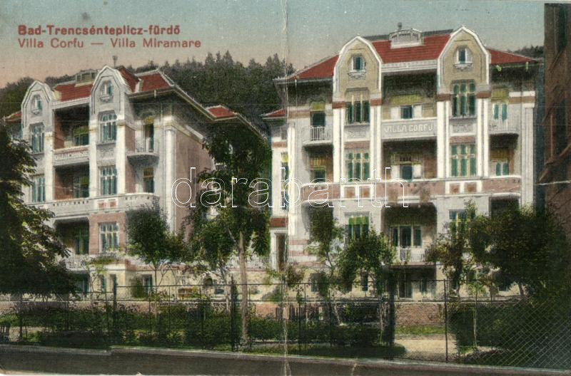 Trencsénteplic, Trencianske Teplice; Villa Miramare, Villa Corfu (fa) https://www.darabanth.com/de/247-Fernauktion/247.0/Ansichtskarten/Slowakei~10/Trencsenteplic-Trencianske-Teplice-Villa-Miramare-Villa-Corfu-fa~II1052709