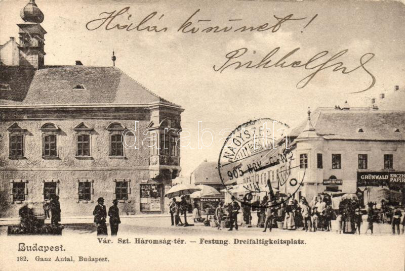 Budapest I. Vár, Szentháromság tér, Grünwald papír üzlete, Walther üzl... https://www.darabanth.com/de/247-Fernauktion/247.0/Ansichtskarten/Ungarn~8/Budapest-I-Var-Szentharomsag-ter-Grunwald-papir-uzlete-Walther-uzlete-Ganz-Antal-182~II1091029