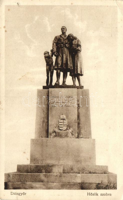 Miskolc, Diósgyőr, Hősök szobra, Müller József kiadása (EK) https://www.darabanth.com/de/247-Fernauktion/247.0/Ansichtskarten/Ungarn~8/Miskolc-Diosgyor-Hosok-szobra-Muller-Jozsef-kiadasa-EK~II1049376