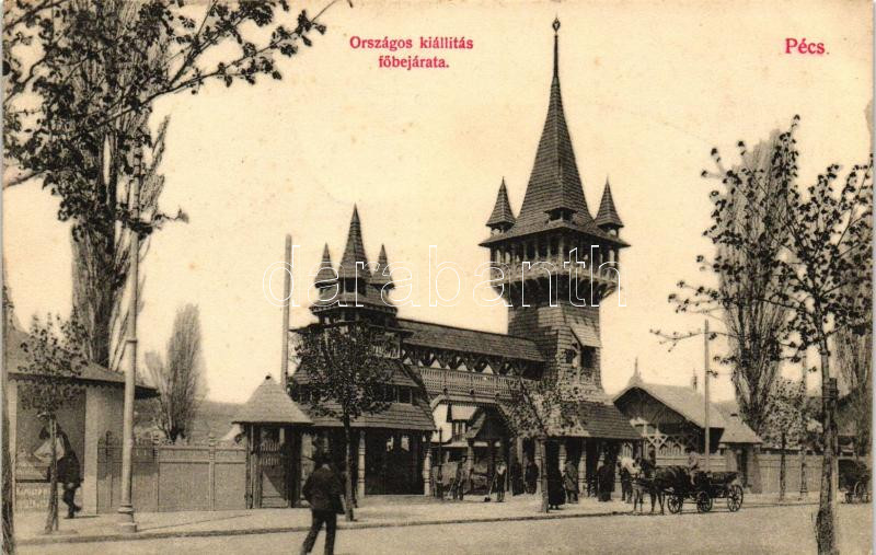 Pécs, Országos kiállítás főbejárata https://www.darabanth.com/de/247-Fernauktion/247.0/Ansichtskarten/Ungarn~8/Pecs-Orszagos-kiallitas-fobejarata~II1055030