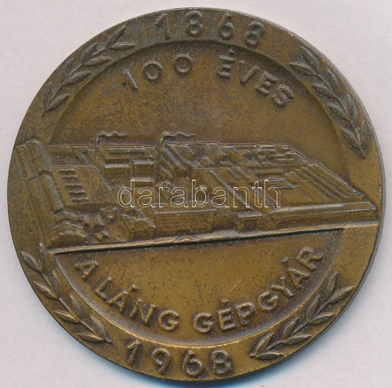 1968. "100 éves a Láng Gépgyár" egyoldalas Br emlékérem (60m... https://www.darabanth.com/de/247-Fernauktion/247.0/Numismatik/Ungarische-Edelmetall-Gedenkmunzen~600008/1968-100-eves-a-Lang-Gepgyar-egyoldalas-Br-emlekerem-60mm-T2~II1096564