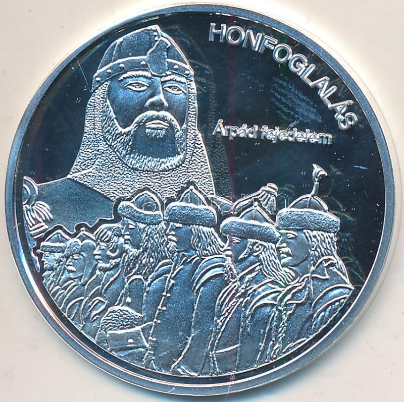 Beschreibung: DN "Nemzetünk nagyjai - Árpád fejedelem, honfoglalás" Ag emlékérem tanúsítvánnyal (10,37g/0.999/35mm) T:PP