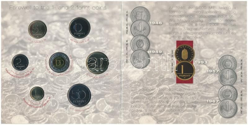 2008. 1Ft-100Ft 7xklf darabos forgalmi sor "Búcsú az egy- és kétf... https://www.darabanth.com/de/247-Fernauktion/247.0/Numismatik/Ungarische-Munzen~600007/2008-1Ft-100Ft-7xklf-darabos-forgalmi-sor-Bucsu-az-egy-es-ketforintostol-disztokos-szettbe~II1178218