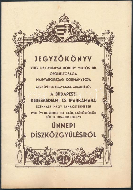 1938 Jegyzőkönyv vitéz Nagybányai Horthy Miklós arcképének felavatása ... https://www.darabanth.com/de/248-Fernauktion/248.0/Andere-Sammelgebiete/Drucksachen~200007/1938-Jegyzokonyv-vitez-Nagybanyai-Horthy-Miklos-arckepenek-felavatasa-alkalmabol-rendezett~II1187083