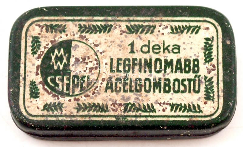 Csepel, legfinomabb acélgombostű, kopottas fémdoboz, 4x2x1cm https://www.darabanth.com/de/248-Fernauktion/248.0/Andere-Sammelgebiete/Flohmarkt~200016/Csepel-legfinomabb-acelgombostu-kopottas-femdoboz-4x2x1cm~II1183532
