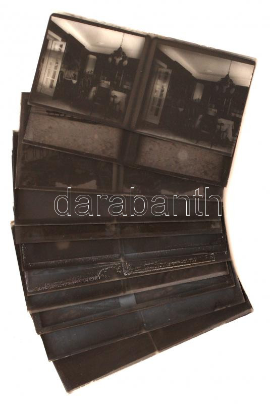 Beschreibung: cca 1920 Sztereó diapozitív felvételek üveglemezen egy jómódú család utazásairól, lakásáról, 12 db sztereó dia, 6x6 cm, üveglemez 6x13 cm