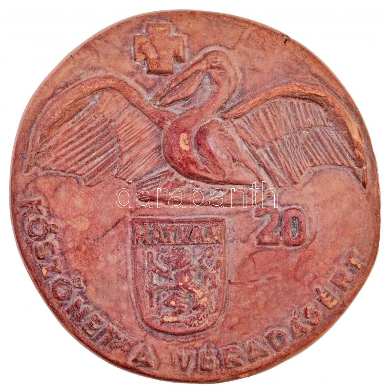 ~1960-1970. "Köszönet a Véradásért - 20 - Hatvan" kerámia plakett (~12... https://www.darabanth.com/de/248-Fernauktion/248.0/Numismatik/Ungarische-Edelmetall-Gedenkmunzen~400009/7E1960-1970-Koszonet-a-Veradasert--20--Hatvan-keramia-plakett-7E123mm-T2-ph-lepattanC3~II1184723