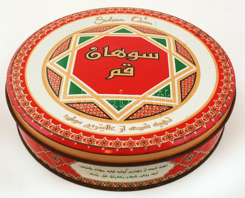 Beschreibung: Illusztrált, arab feliratos fémdoboz, 17x4cm