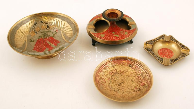 Beschreibung: Indiai réz tárgyak, közte festett is, többsége jelzett, összesen: 4 db, d:8-14 cm