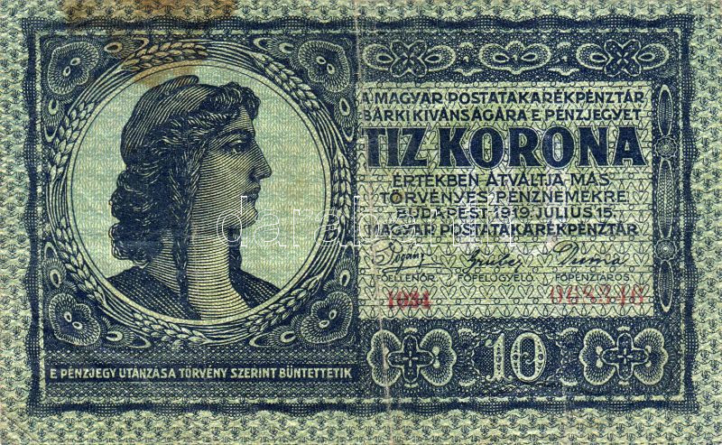 Beschreibung: 1919. 10K I.kiadás "Frigiai sapka" T:III foltos