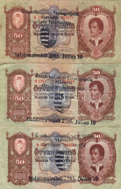 Beschreibung: 1932. 50P "Éremgyűjtők Második Országos Találkozója 2005..." (3x) benne hiányos fny. T:II,III