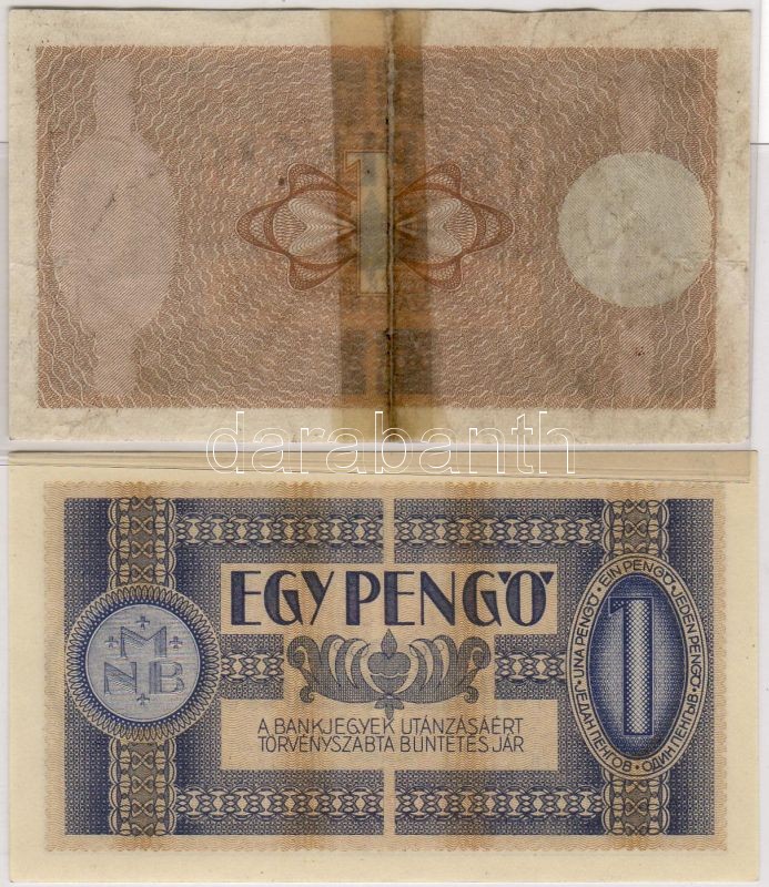 1938. 1P T:I + 1P előlapon csak alapnyomattal, középen elszakadva RRR!... https://www.darabanth.com/de/25-Fernauktion/25.0/Numismatik/~82/1938-1P-TI-plus-1P-elolapon-csak-alapnyomattal-kozepen-elszakadva-RRR~II48092