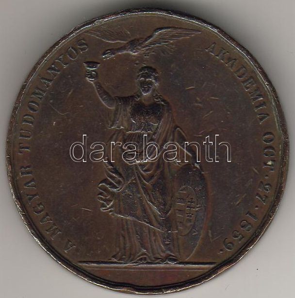 Beschreibung: 1859. "Magyar Tud. Akadémia - Kazinczy F." nagyalakú bronzplakett T:4