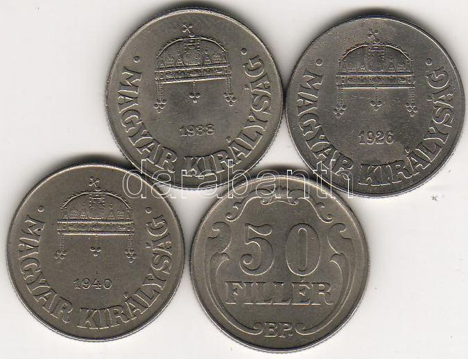 1926,38,39,40 50f teljes sor 4db T:2-,2 https://www.darabanth.com/de/25-Fernauktion/25.0/Numismatik/~95/1926-38-39-40-50f-teljes-sor-4db-T2-2~II47374