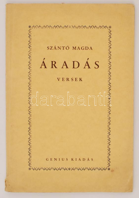 Szántó Magda: Áradás. Versek. Genius Kiadás. Kiadói karton kötésben. S... https://www.darabanth.com/de/25-Gross-Auktion/25.1/Kunst-Dokumente/Bucher-Sonstige-Raritaten~10084/Szanto-Magda-Aradas-Versek-Genius-Kiadas-Kiadoi-karton-kotesben-Szerzo-altal-dedikal~II1370660