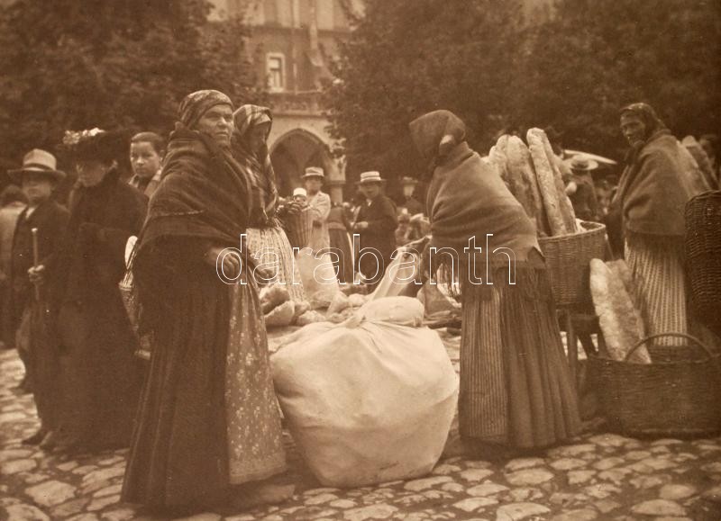 Beschreibung: cca 1910 Brassó, piactér, vintage fotó, kasírozva, 29x24 cm, karton 34x29 cm / cca 1910 Brasov, marketplace, vintage photo, 34x29 cm