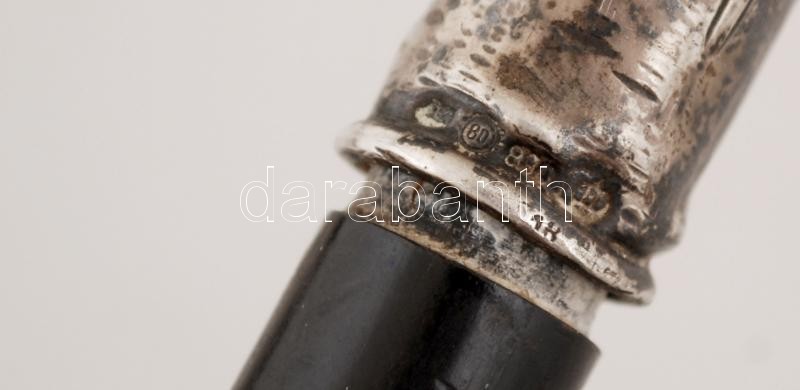 Madármotívumos ezüst (Ag.) fejes ébenfa sétapálca, jelzett, kis sérüléssel, h: 91 cm /