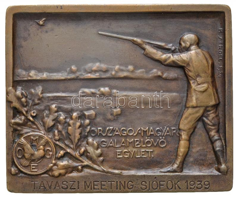 Kisfaludi Strobl Zsigmond (1884-1975) 1924. "Országos Magyar Galamblövő Egylet / Tavaszi Meeting Siófok 1939" Br plakett "BERÁN N. BUDAPEST DÖBRENTEI Ú. 2." gyártói jelzéssel (82,92g/51x61,5mm) T:2 /